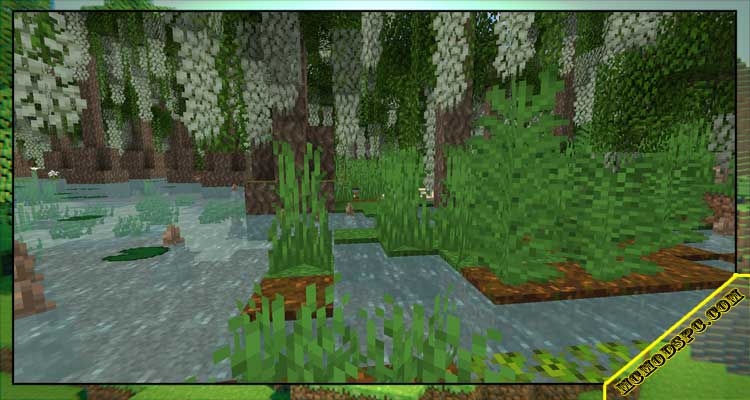 Besides, this biome may also contain a new plant that is cypress. From this tree, which will grow around the cypress knee, you can get a new type of wood or even build building blocks. The mod also offers the opportunity for you to find algae, lilies, giant ferns, American herbs, and sour gooseberries to make juice.