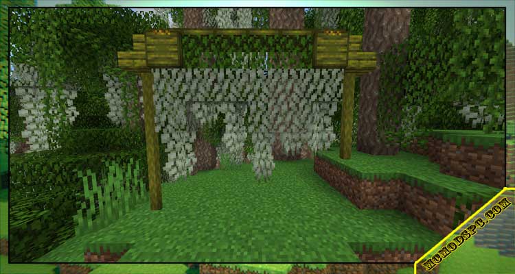 In fact, the community that this mod adds to the game is inspired by the Florida swamps. It is extremely diverse with plants and flowers, albeit a marshland. Here, you will have the opportunity to wander the underworld and explore that exciting world. In addition, you can also earn rare goods in the biome to craft special swirl blocks and gadgets.