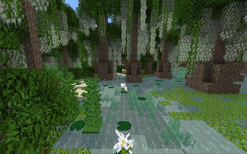 Besides, this biome may also contain a new plant that is cypress. From this tree, which will grow around the cypress knee, you can get a new type of wood or even build building blocks. The mod also offers the opportunity for you to find algae, lilies, giant ferns, American herbs, and sour gooseberries to make juice.